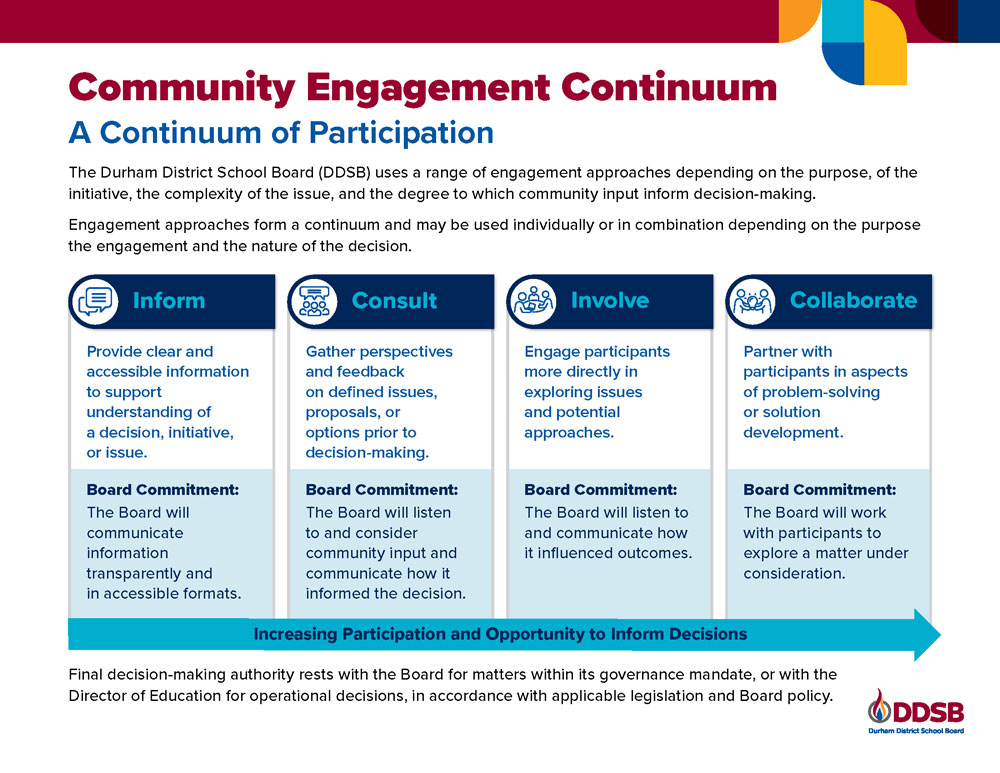 The Durham District School Board (DDSB) is introducing a new Community Engagement Policy (P COM 07) — and we're inviting your input as part of this process.